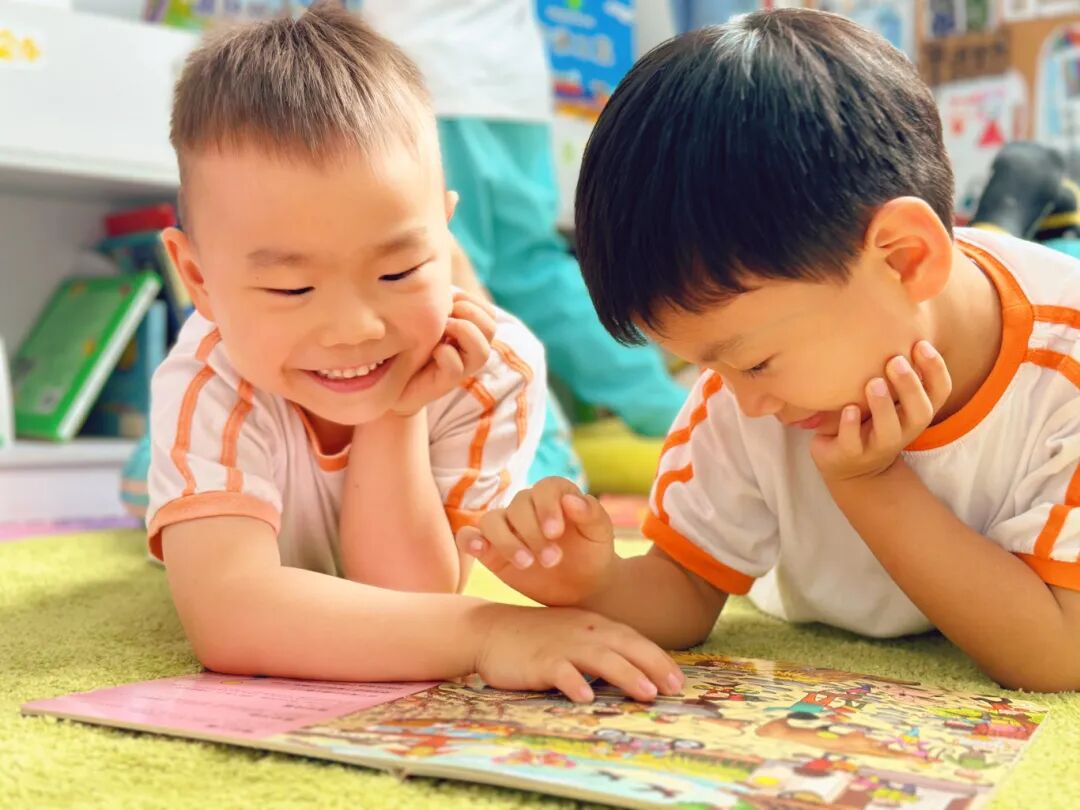 江门市蓓蕾幼儿园孩子们开心地共读图书