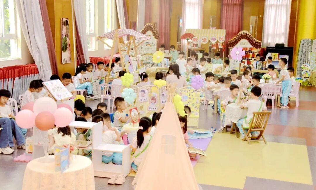 蓬江区第一幼儿园孩子们在阅览室游戏和阅读
