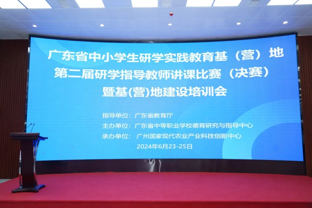 2024年6月23至25日,由广东省教育厅指导,广东省中等职业学校德育研究与指导中心主办,广州国家现代农业产业科技创新中心承办的广东省中小学生研学实践教育基(营)地第二届研学指导教师讲课比赛(决赛)暨基(营)地建设培训会在广州举行。