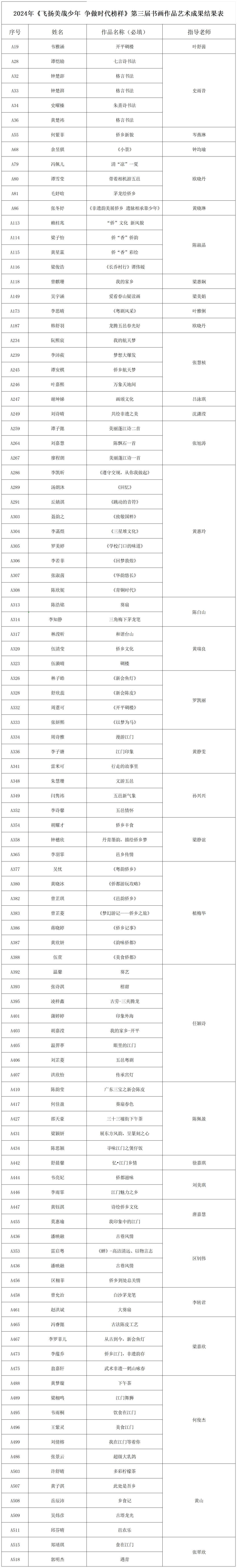 6月28日,2024年《飞扬美哉少年 争做时代榜样》第三届书画作品学习成果评选活动在江门市飞扬美哉少年文化艺术交流中心顺利举行。本次书画征集活动吸引了广大学生书画爱好者的踊跃参与,书画作品投稿来自江门地区的各个学校、培训中心,共收集了1100多幅作品送至项目工作组参加评选。评选分为初选和终选两个阶段,工作组邀请专家老师,本着公平、公正的原则,经过严格的评选后,最终选出获奖作品一等奖104名、二等奖155名、三等奖260名、优秀指导老师奖34名、优秀组织奖10个。(获奖证书可于开幕当天现场领取,或工作日时间到工作组领取)