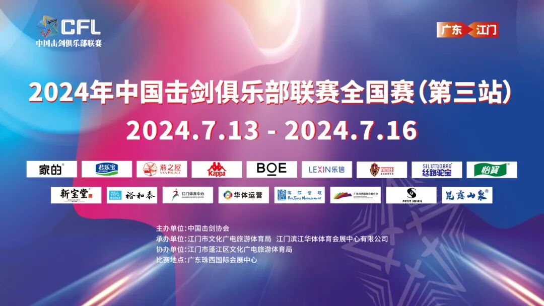 该赛事是由中国击剑协会主办,江门市文化广电旅游体育局、江门滨江华体体育会展中心有限公司承办,江门市蓬江区文化广电旅游体育局协办。