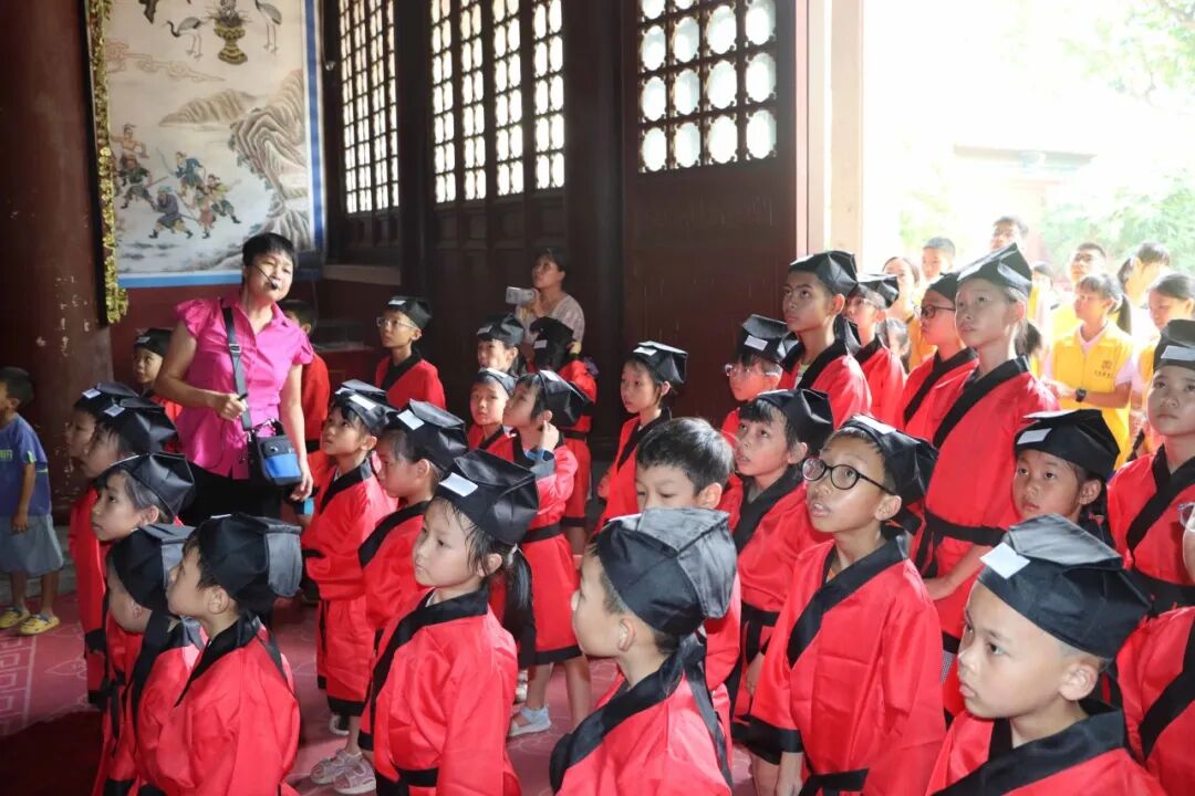 紧接着,诵读经典班项目创办人袁梅梅馆长引领着现场的小学员们共同诵读《论语》“学而”篇的第一、二章。孩子们稚嫩而认真的诵读声,不绝于耳,为这座历史悠久的建筑注入了新的生机与活力。在袁馆长的悉心指导下,小学员们仿佛穿越时空,与古代的圣贤进行了一场跨越千年的对话,共同感受着中华文化的博大精深。