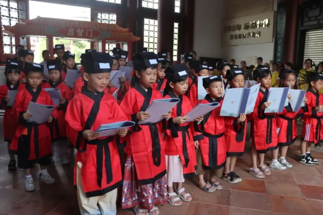 7月14日的清晨,新会学宫内书声琅琅,小学员们清脆悦耳的读书声,正式揭开了“诵读经典 传承文明——五邑公共图书馆诵读经典班”的新篇章。“幼敏悟过人,读书辄成诵”,此刻的诵读不仅仅是对经典的致敬,更是对未来的期许。愿今日的朗朗书声,成为学员们未来岁月中最珍贵的回忆,让经典的种子在他们心中生根发芽,绽放出璀璨的文化之花。