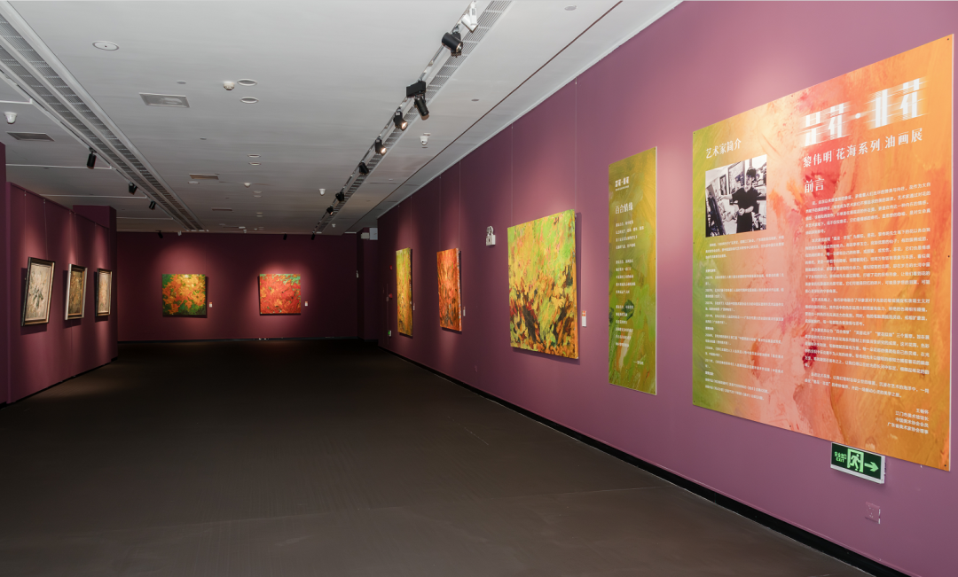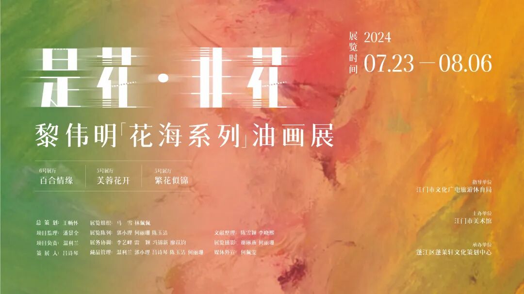 近日,由江门市文化广电旅游体育局指导,江门市美术馆主办、蓬江区蓬莱轩文化策划中心承办的“是花·非花——黎伟明花海系列油画作品展”在江门市美术馆开展。本次展览展出了黎伟明先生百合花、水木芙蓉系列作品100多幅,较全面呈现了黎伟明先生近年来以“花”为主题的油画创作探索成果。