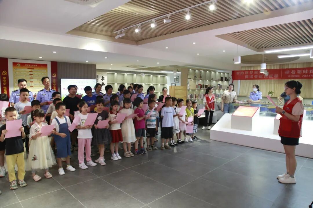 萌娃进警营,书香润童心。为进一步深化暖警爱警工程,传递对民警子女的关爱之情,搭建民警与子女间的亲情桥梁。近日,江门市图书馆“小绘本 大分享”绘本阅读公益行走进警营,开展绘本故事分享、经典诵读、传统技艺体验等丰富多彩的文化活动,民警亲子共70余人热情参与其中。