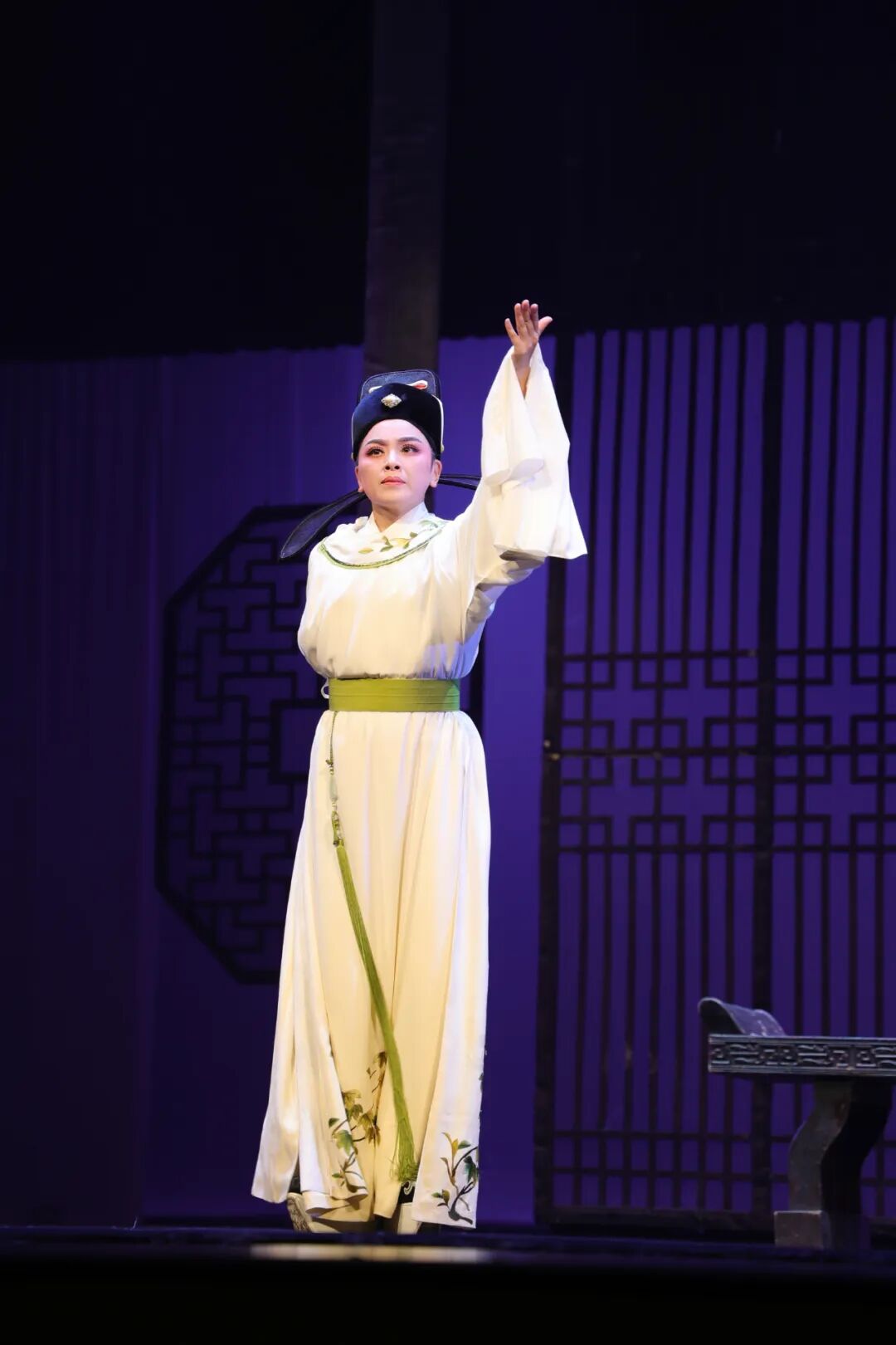 “女小生”林燕云扮演的李商隐,艺术形象丰神俊朗、令人信服。其表演细腻且富有激情,唱腔声情并茂,“沧海月明珠有泪,蓝田日暖玉生烟”,举手投足间尽显诗人的洒脱与儒雅。全剧以唱动人、以情感人,令观众为之倾倒。