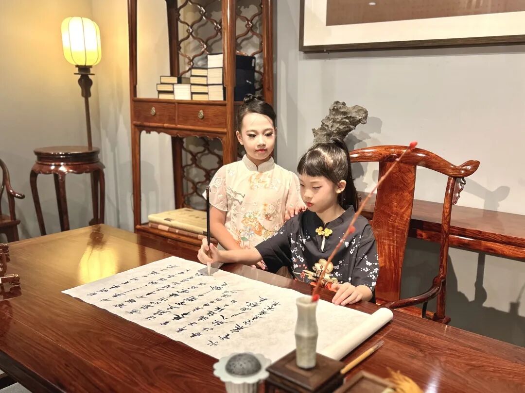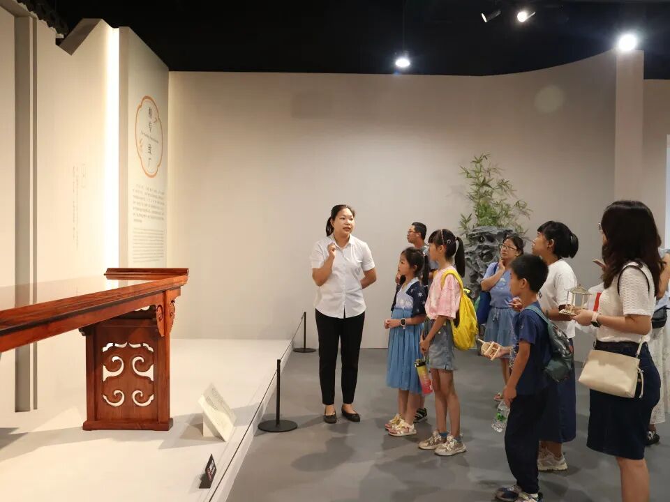 活动现场,孩子们的欢声笑语与专注的神情交织成一幅温馨的画面。完成作品后,大家还参观了“澄古匠心——伍炳亮家具艺术展”,在古典与现代的交融中,感受中国传统家具的精湛技艺与深厚底蕴。