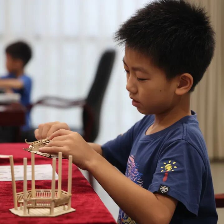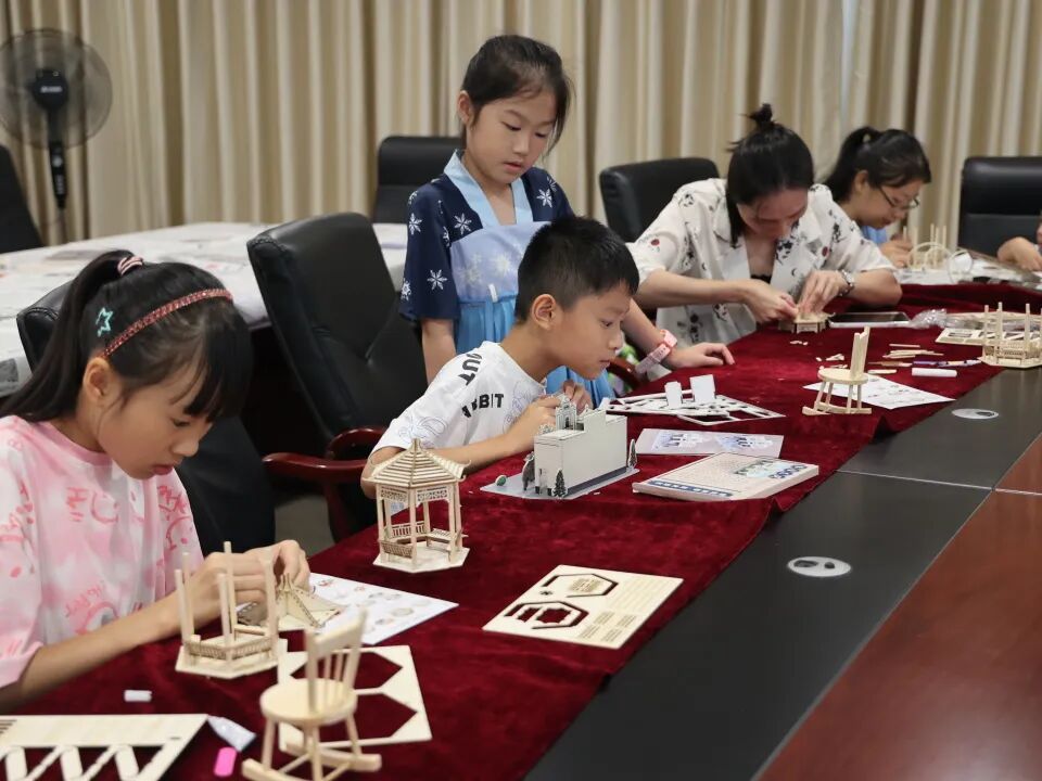 在7月14日的上午,一场别具特色的“独具匠心·六角凉亭手工制作活动”拉开了帷幕。家庭们欢聚一堂,孩子们在家长的陪伴下,亲手制作属于自己的六角凉亭。小小的木片在他们的手中逐渐成形,每一块都凝聚着匠心与童趣。