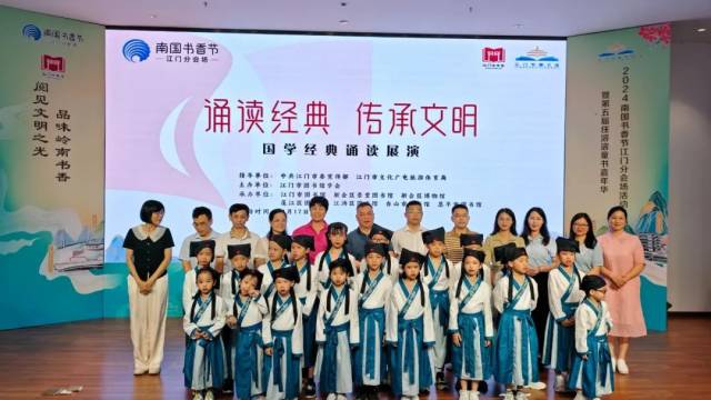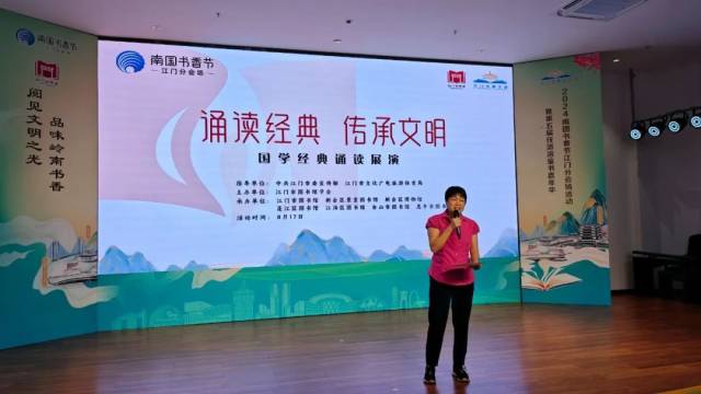 侨乡江门,书声荡漾,经典流传。为弘扬中华优秀传统文化,扎实推进全民阅读和文化强市建设,由中共江门市委宣传部、 江门市文化广电旅游体育局指导,江门市图书馆学会主办,江门市图书馆 、新会区景堂图书馆 、新会区博物馆、蓬江区图书馆、江海区图书馆、台山市图书馆、恩平市图书馆承办的2024南国书香节“诵读经典 传承文明——国学经典诵读展演”活动在江门市图书馆圆满举办。