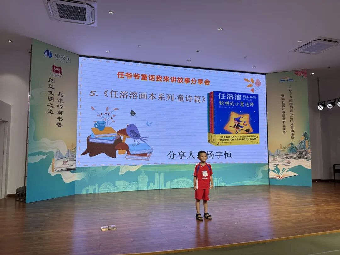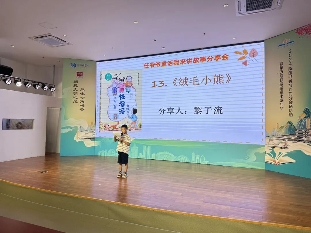 “任爷爷童话我来讲”故事分享会,是江门市图书馆为“任溶溶童书节”这个江门独有品牌而打造的阅读活动,旨在打响“任溶溶儿童文学”品牌,助力全民阅读和儿童文学的繁荣发展,同时为孩子们提供一个展示自我的平台,让他们在阅读和分享中收获知识、在童话的陪伴中快乐成长。相信“任爷爷童话我来讲”一个个充满幻想和温暖有趣的童话,将成为他们美好的童年记忆。