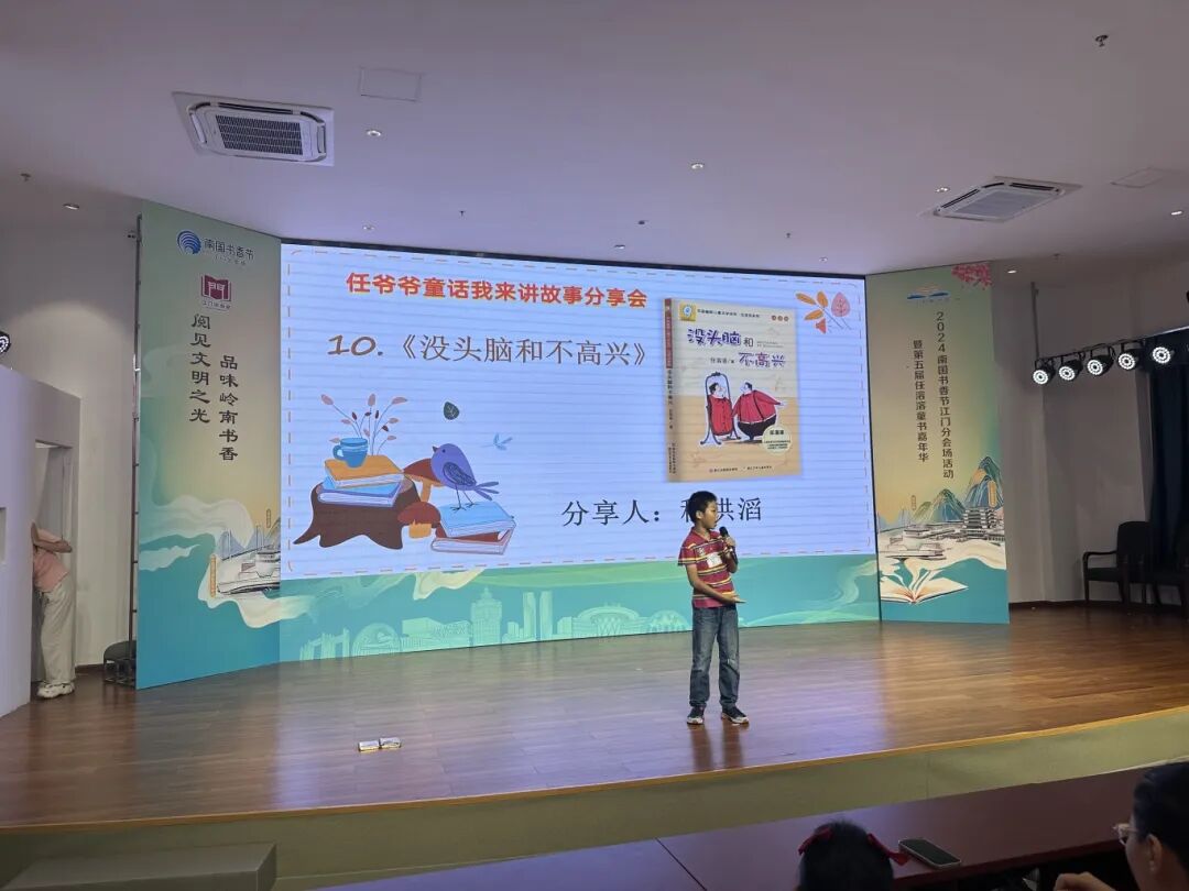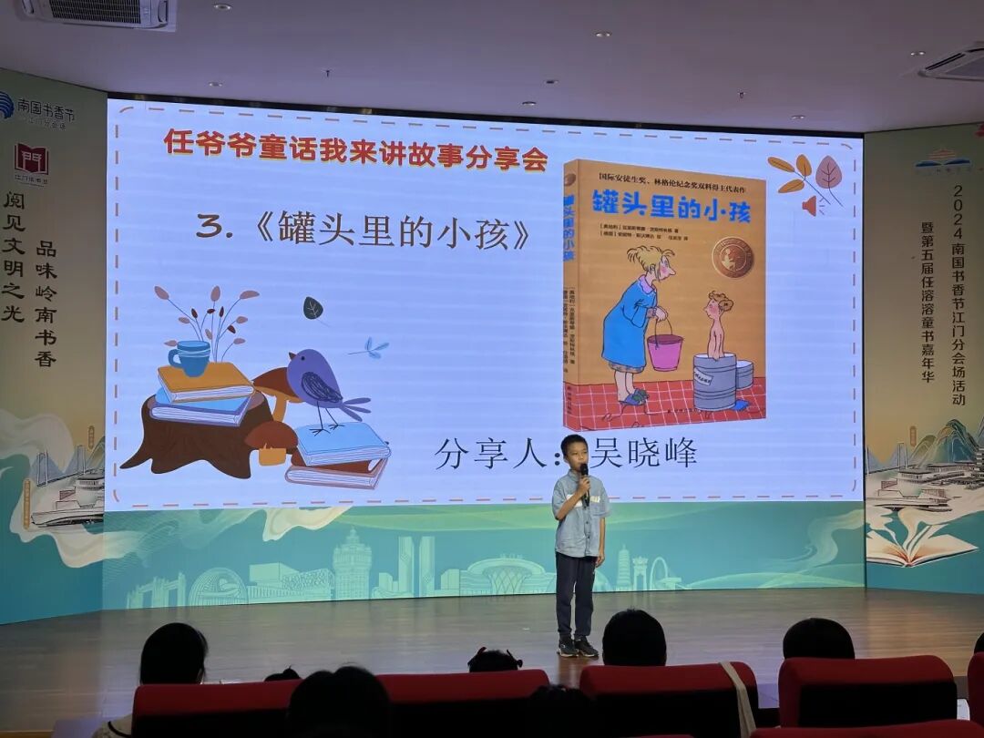 在2024 南国书香节江门分会场活动暨第五届任溶溶童书嘉年华之际,江门市图书馆成功举办了一场兼具温馨与奇幻的“任爷爷童话我来讲”故事分享会,为热爱童话故事的孩子们提供了一个展示自我的舞台。此次活动吸引了众多热爱童话的小朋友和家长们,大家共同沉浸在任溶溶先生创造的奇妙童话世界中。