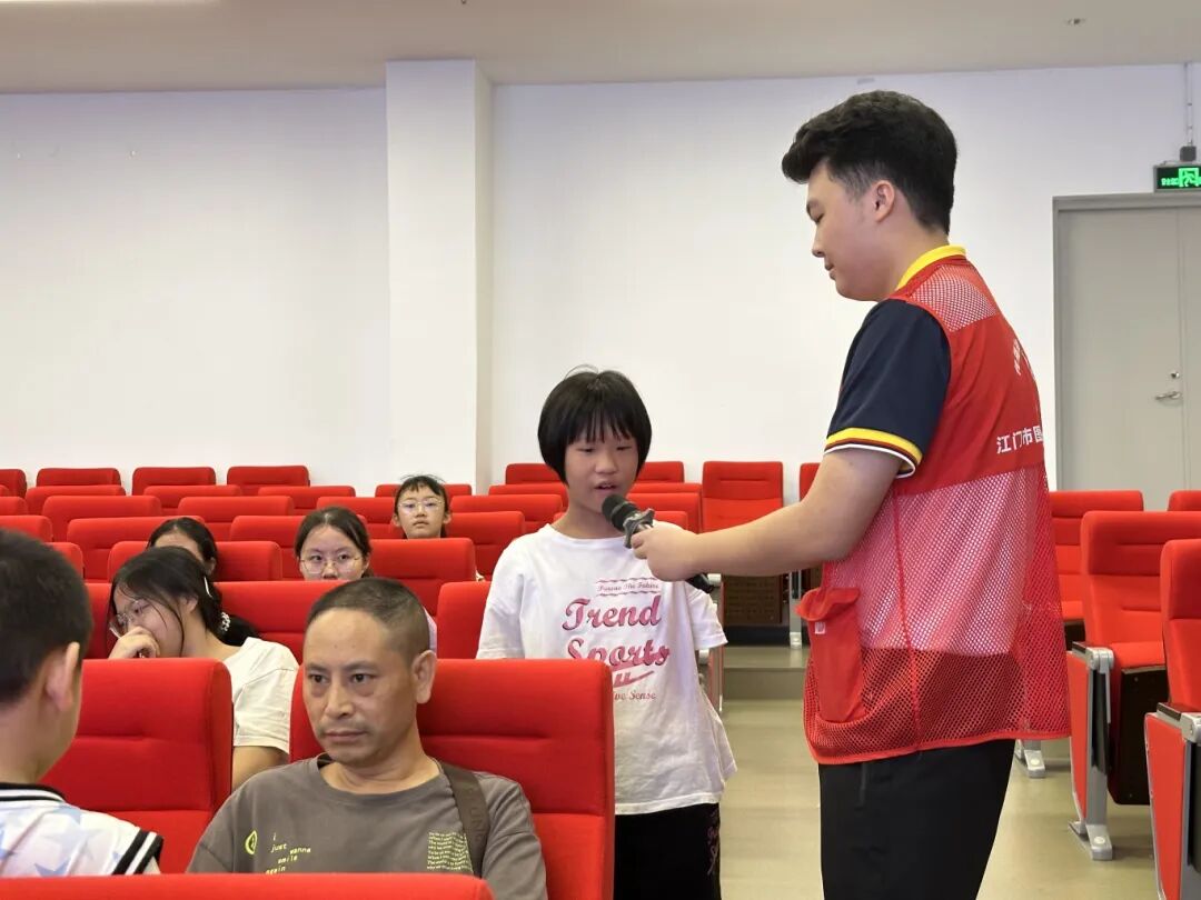 有趣的“任溶溶作品知识问答”互动环节,激发了现场观众们的热情,观众席上的孩子们对于任溶溶童话的故事内容、人物角色、故事主题等方面的知识非常熟悉,他们积极思考,踊跃回答,展现出了对任溶溶童话的了解与喜爱。答对问题的小朋友们获得了南国书香节江门分会场提供的购书券礼物,脸上洋溢着自豪的笑容。