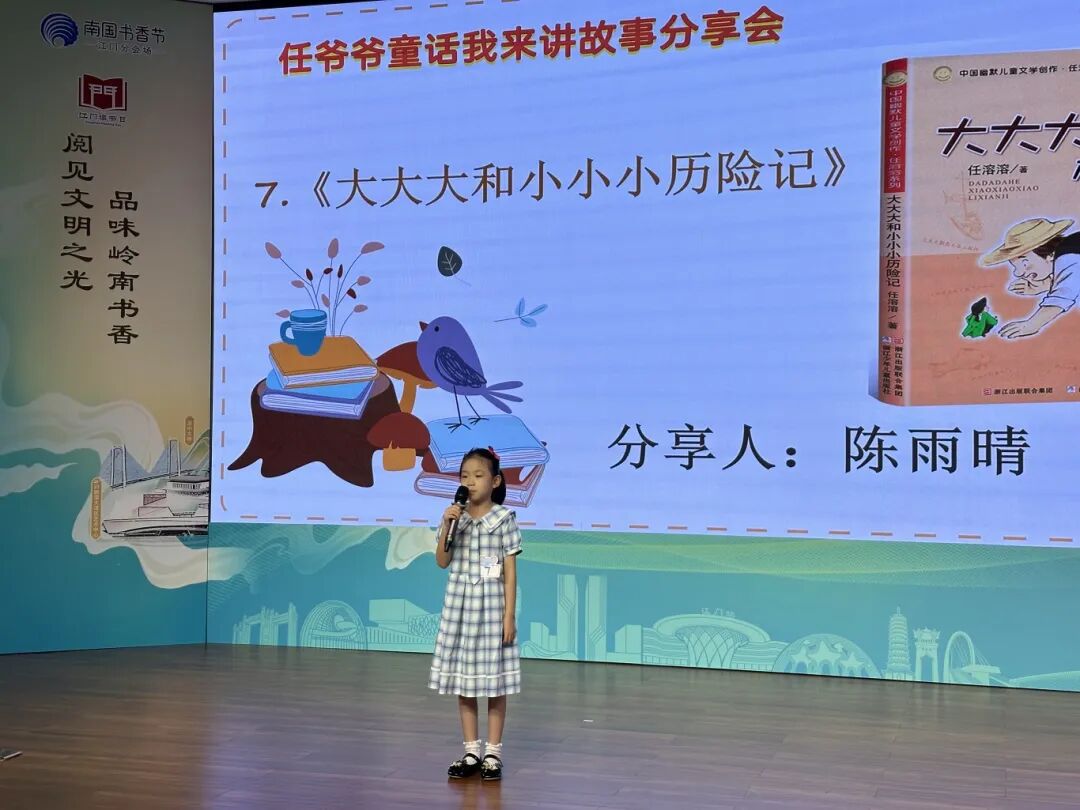 张雨晴、程洪滔和梁羽潼三位小读者分别讲述了《没头脑和不高兴》这个故事书里的多个精彩情节,他们将夸张有趣的故事演绎得惟妙惟肖,逗得台下观众哈哈大笑;李盈锐、陈雨晴两位小读者分别分享了《大大大和小小小历险记》里的故事,带着大家一同踏上了惊险刺激的冒险之旅;彭优璇小读者选择了《我是一个可大可小的人》,精彩的讲述让大家感受到了坚持梦想的力量;李国庆小读者分享的《家有宠物小猫莫格系列》和张芷彤、黎子流两位小读者分别讲述了《绒毛小熊》,用温暖的童声,让我们感受到了浓浓的爱意;吴靖雯小朋友用生动的语言和丰富的肢体动作为我们带来《神奇的窗子》的故事分享;《任溶溶画本系列·童诗篇》在杨宇恒小朋友的讲述下仿佛被注入了新的活力;尹晞儿小朋友分享的《借东西的小人》和吴晓峰小朋友分享的《罐头里的小孩》则让我们感受到了奇幻世界的无穷魅力。