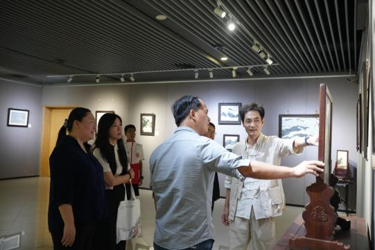 江门市文化馆党支部书记、馆长、江门市非物质文化遗产保护中心主任苏志,蓬江区文广旅体局党组成员、副局长朱婉姬,中国书法家协会会员、江门市书法家协会副主席、江门市中国画学会副会长、新会区书法协会会长、新会区美术馆馆长黄炳壮,五邑大学艺术与设计学院教师、广东省中国画学会理事、广东省致公书画院副院长隋志刚,广东省工艺美术大师、传统工艺正高级工程师、白沙茅龙笔制作技艺省级非遗传承人张瑞亨等江门市工美大师、非遗传承人出席了活动。