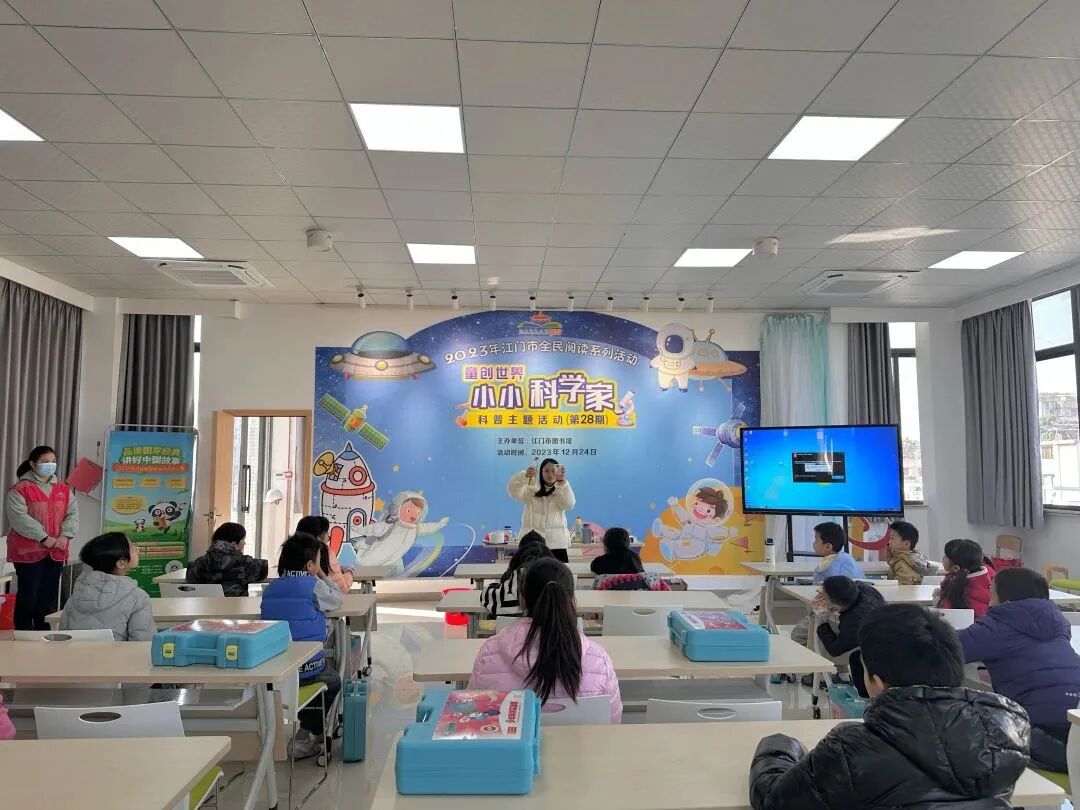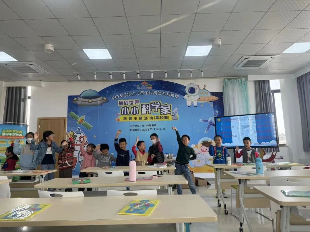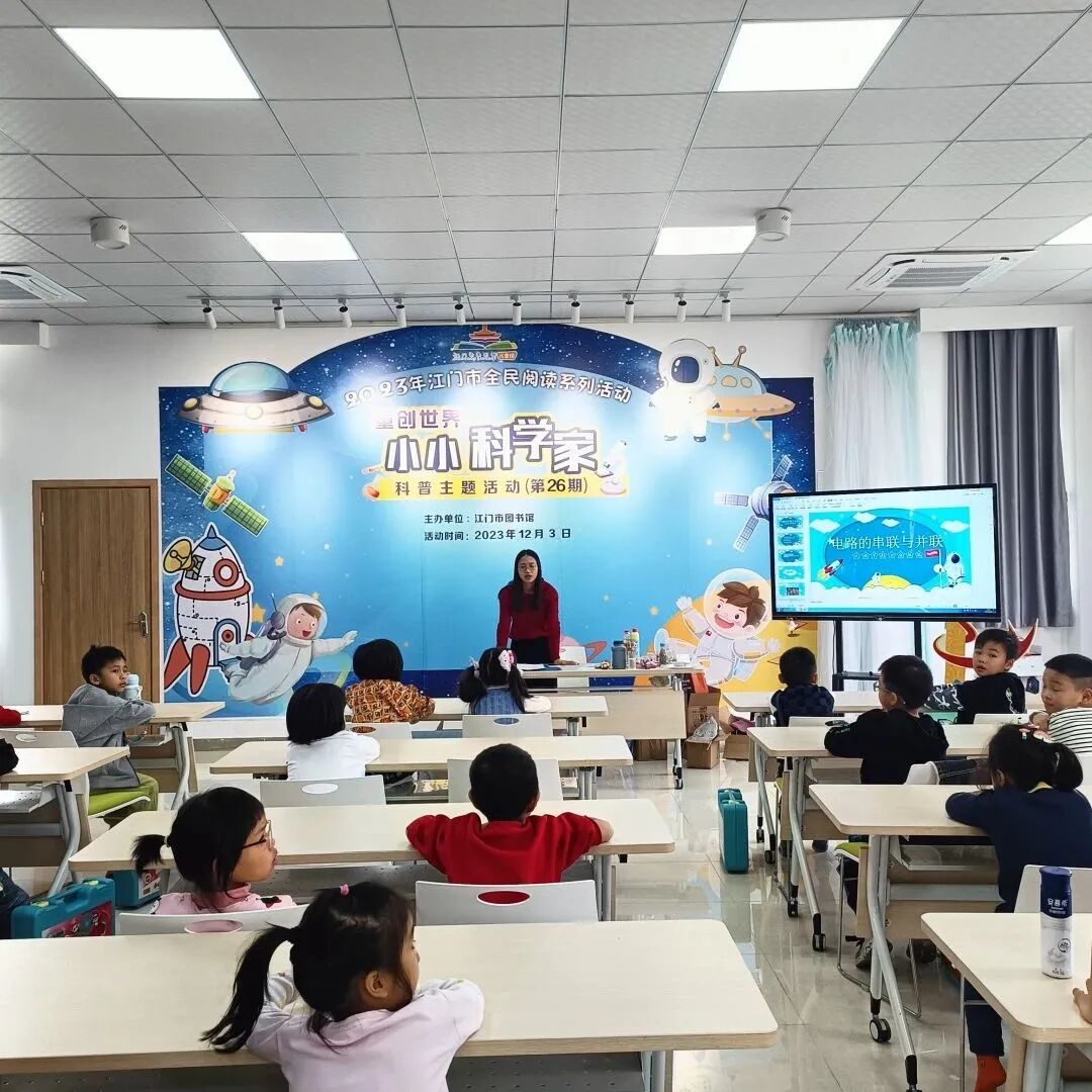 江门市图书馆“童创世界——小小科学家”科普主题活动旨在普及物理、化学、生物等基础知识,指导9~12 岁少儿进行科学实验操作,引导少儿在观察、实验和交流讨论中获得科学知识和实验技能。2023年小小科学家科普主题活动共开展31期课程,吸引读者参与1200余人,活动深受读者朋友的喜爱。为进一步提高图书馆阅读服务水平,江门市图书馆也将探索更多精彩的活动品牌和活动课程以满足读者阅读需求。