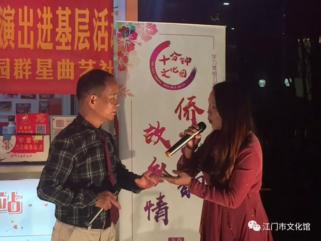 11月17日晚,随着“春之声艺术团”在东湖广场完成本年度最后一场“十分钟文化圈”文艺演出,由江门市文化广电旅游体育局主办、江门市文化馆承办的2019年“侨乡韵 故乡情——十分钟文化圈”文艺演出惠民工程也圆满画上了句号。