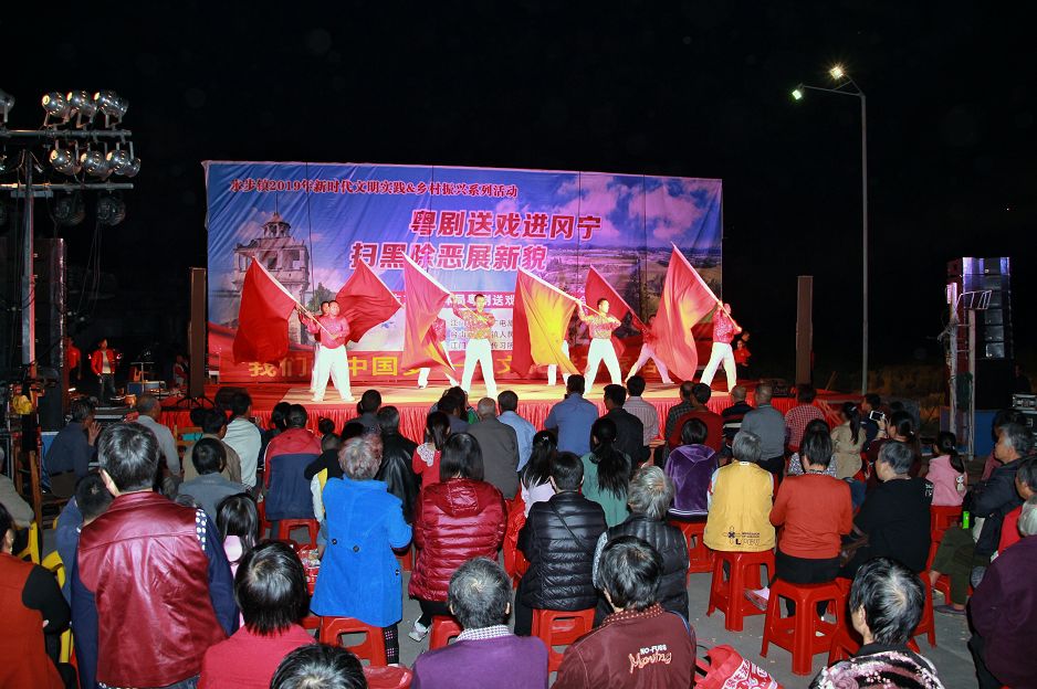 本次粤剧送戏下乡是江门市文广旅体局对口扶持水步镇冈宁村的文化惠民活动,通过粤剧表演形式提高人民群众对文化生活的获得感、幸福感,以文化振兴助力乡村振兴、扫黑除恶。