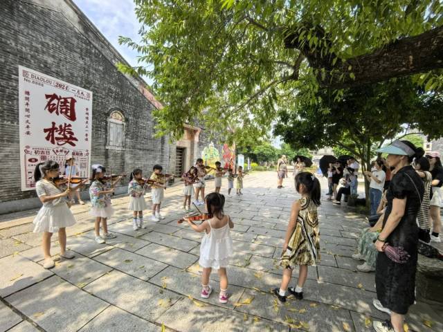 开平碉楼旅游文化区举办文艺进景区系列活动,让游客近距离感受开平的人文底蕴和文化魅力。除了民乐演奏之外,开平民歌、民谣演唱等精彩节目也为景区增色不少,让游客游玩中释放乡愁、乡情。