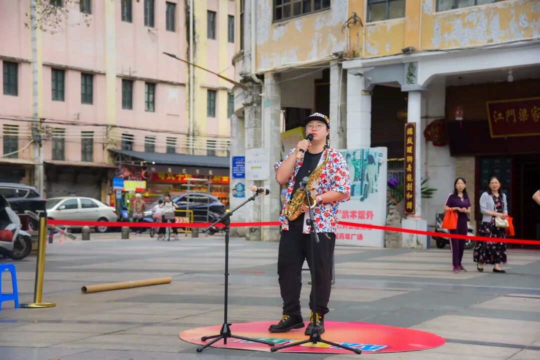 11月2日,秋末的微风轻拂江门,长堤青年广场被一阵悠扬而深情的萨克斯声唤醒。“乐器中的浪漫诗人”邂逅古老的历史文化街区,音乐的灵魂与历史的底蕴相碰撞,艺术火花点亮了市民、游客的“三点三精彩之旅”。