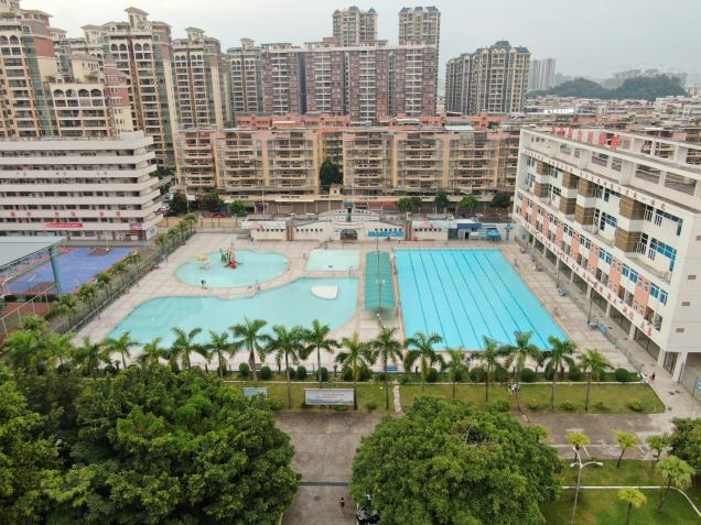 内设初级池(标准50m x 25m泳池)、嬉水池、儿童池、娃娃池,水深0.5米—1.5米不等,适合各年龄段市民群众。