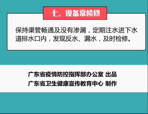 七、保持渠管畅通及没有渗漏,切勿擅自将渠管改道。定期注水进下水道排水口内,以防昆虫及臭气经排水口进入室内。对于下水道密闭性不严格的小区,如发现反水、漏水,应当加强马桶或便器的密封性。