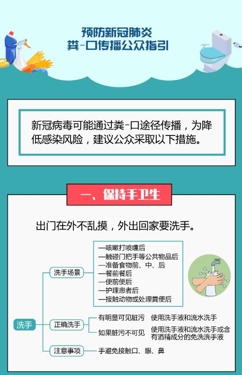 新冠肺炎是一种新发疾病,防控进展提示新冠病毒还可通过潜在的粪-口途径传播。根据目前对该疾病的认识制定本指引,为公众个人预防新冠肺炎粪-口传播提供指导。