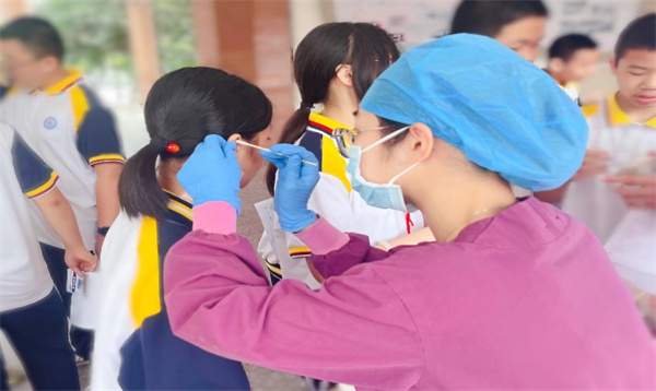 市直卫生健康系统团员青年代表走进江门市外海中学,与同学们一起面对鲜艳的团旗、重温入团誓词,铿锵有力的誓词回荡在现场每一位团员青年的心中。随后,团员青年代表发挥专业特长,为广大师生进行身高、体重、血压、视力听力、口腔疾病等常规健康筛查;开展青少年脊柱侧弯、青春期健康知识等健康宣讲;组织中医药文化体验等活动。活动现场气氛热烈,同学们积极参与、兴趣高涨,在实践中收获知识和快乐。随后,市直各医疗卫生单位团员青年代表参观了爱国主义教育基地陈少白故居和维谛技术(江门)有限公司(高新科技产业)。