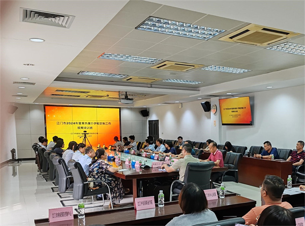 登革热媒介伊蚊监测和控制是登革热防控的重要环节,为切实做好我市登革热防控工作,提高我市防制登革热媒介伊蚊的技术水平,保障人民身体健康,6月14日下午,市爱卫办举办了2024年江门市登革热媒介伊蚊防制工作视频培训班。市爱卫会有关成员单位、市直医疗卫生单位、各县(市、区)、各镇(街)负责同志和各镇(街)、各村(居)媒介伊蚊监测和数据录入工作人员、蚊媒防制质量监督员等约1300人通过远程视频通讯方式在主、分会场分别参加培训。