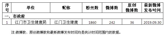 江门市卫生健康局政务微博2019年9月份运行情况表