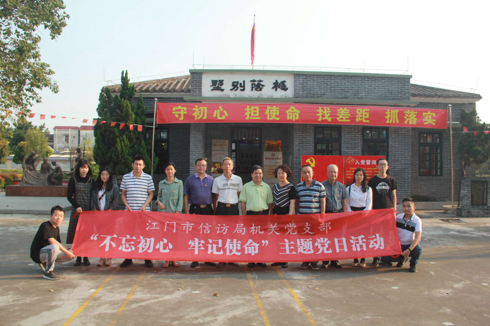 11月11日下午,根据我局开展“不忘初心、牢记使命”主题教育的工作安排,市政府副秘书长、市信访局党组书记、局长刘曙光带领全体党员干部前往新会区大鳌镇南沙小学桃荫别墅,开展“追寻红色足迹、发扬‘红旗精神’”主题党日活动。