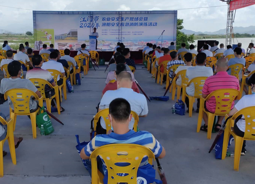 2020年7月10日,江门市农业农村局在台山市广海镇举办2020年农业安全生产现场会暨渔船安全应急消防演练活动,市应急管理局党委委员、副局长高正华赴现场观摩演练活动并作讲话,呼吁有关部门和广大渔民群众要深入贯彻落实习近平总书记关于安全生产重要指示精神,高度重视渔业安全生产,努力增强渔民群众安全生产意识,提高预防和处置火灾事故的能力,全面构建渔业安全生产长效机制,推动我市渔业安全生产形势持续向好。