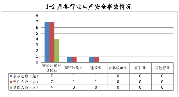 全市共发生生产安全事故9起,其中交通运输和仓储业7起、占78%,商贸制造业1起、占11%,建筑业1起、占11%,农林牧渔业、采矿业和其他行业未发生生产安全事故。