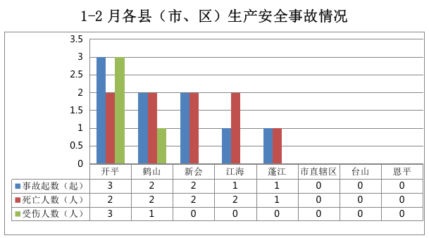 开平事故3起、鹤山事故2起、新会事故2起、江海事故1起、蓬江事故1起。市直辖区1、台山和恩平未发生生产安全事故。