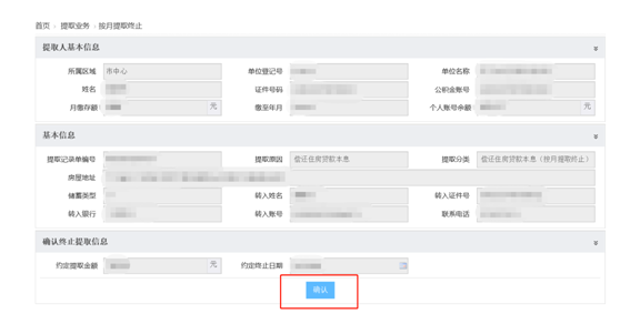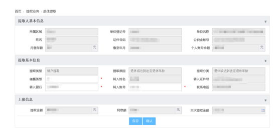 (2) 填写提取基本信息,点击“保存”按钮保存信息,点击“确认”按钮。