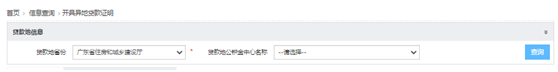 (2)进入页面选择“贷款地省份”和“贷款公积金中心名称”。点击“查询”按钮