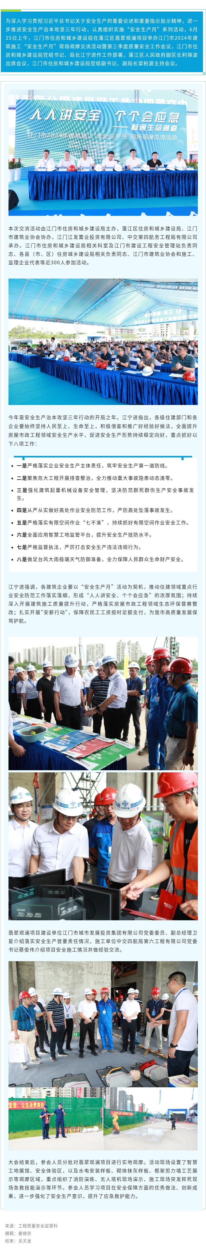 市住房城乡建设局举办江门市2024年建筑施工“安全生产月”现场观摩交流活动暨第三季度质量安全工作会议