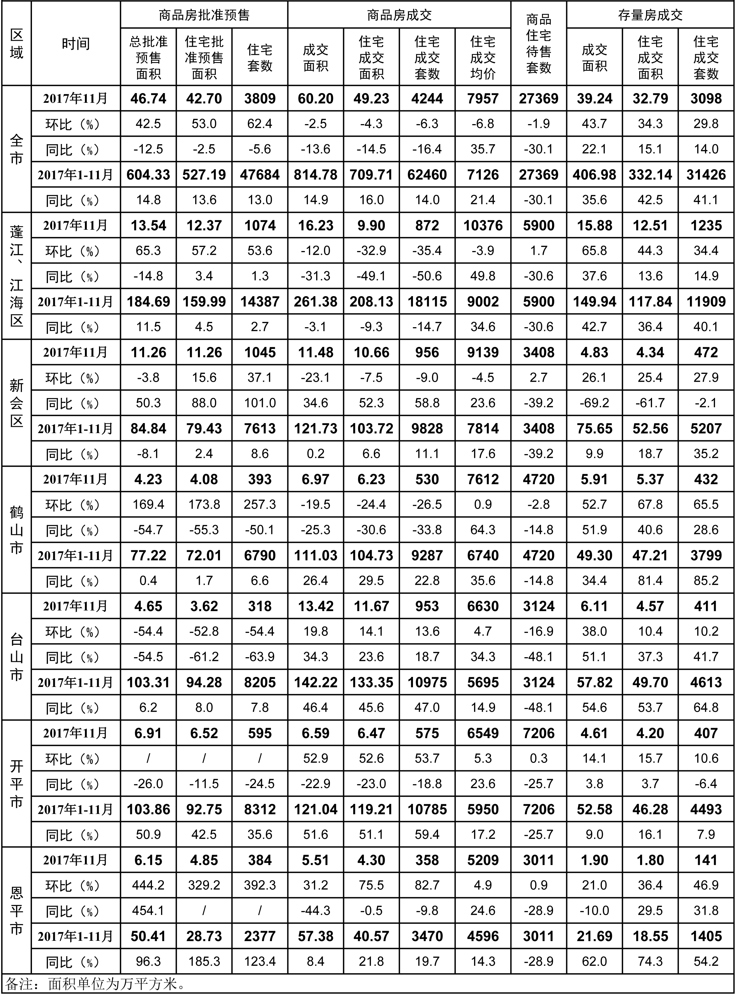 2017年11月江门市房地产市场主要数据