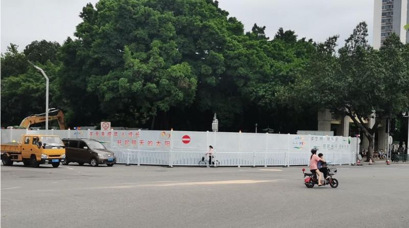 市建管中心组织建设的船厂跨江桥梁项目进入全面施工阶段,施工单位依规对环市三路施工场地进行围蔽施工。初次围蔽后,市建管中心经观察发现,行人在工地围挡旁边行走,与来往机动车辆距离较近,存在安全隐患。根据这一情况,市建管中心要求施工单位立即进行整改,在围挡外加设人行通道防护围栏,并加装反光警示装置,使人车分离,有效提高了行人通行的安全性,使围蔽施工更安全便民。