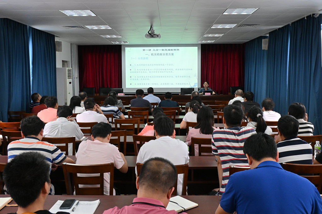 为深入贯彻落实国家档案局关于全面推行机关档案“三合一”制度的通知要求,优化档案资源结构,加强档案资源质量管控,进一步提升机关档案基础业务水平。6月19日下午,市建管中心举办档案“三合一”制度专题培训班,邀请市委办公室四级调研员谭碧珠作专题辅导,中心全体干部职工参与培训活动。
