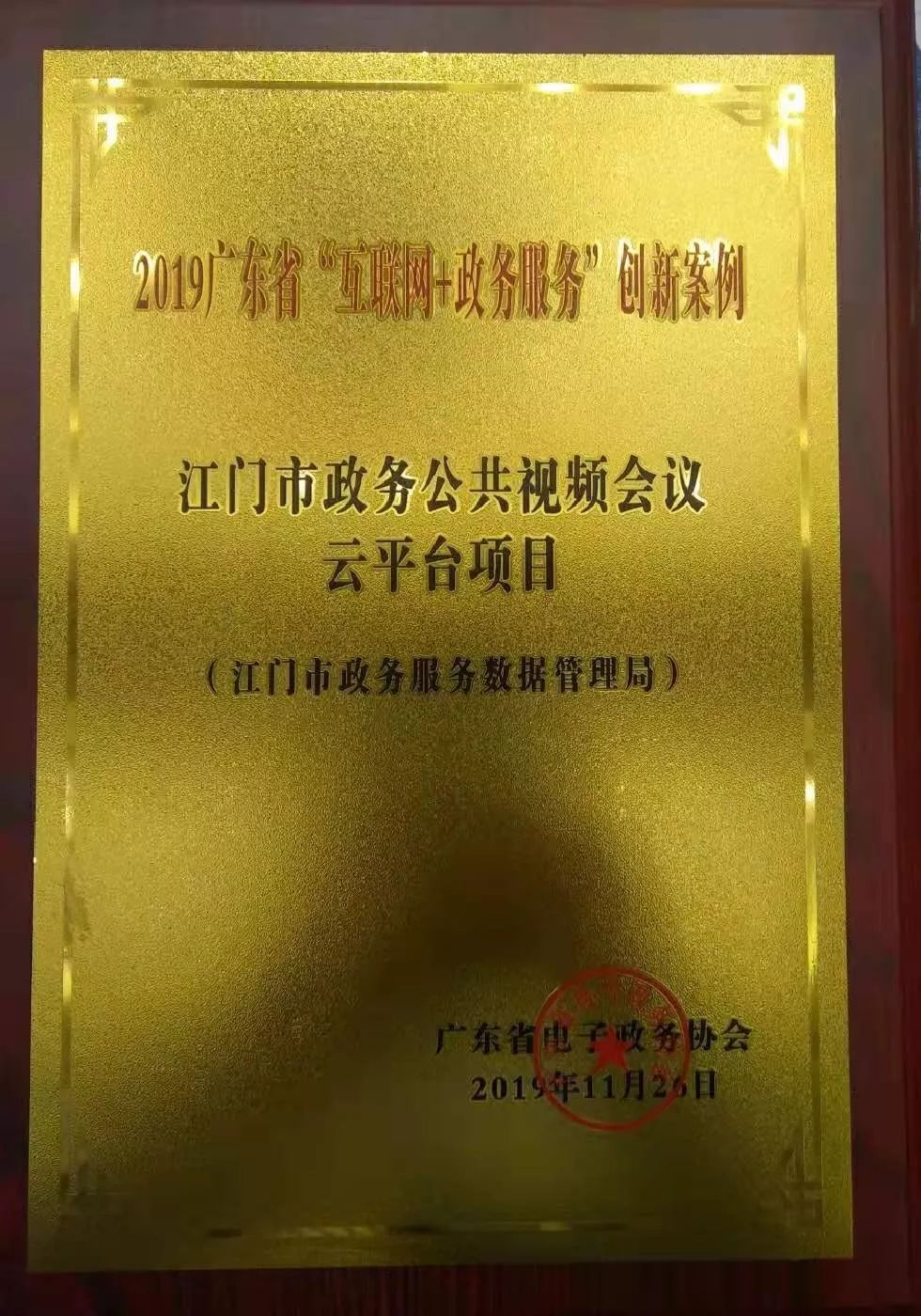 11月26日,由广东省电子政务协会举办的“第四届广东省电子政务和新型智慧城市发展大会暨广东省电子政务年会”在广州召开。在本次大会上,江门市政务公共视频会议云平台项目获评“2019广东省‘互联网+政务服务’创新案例”。