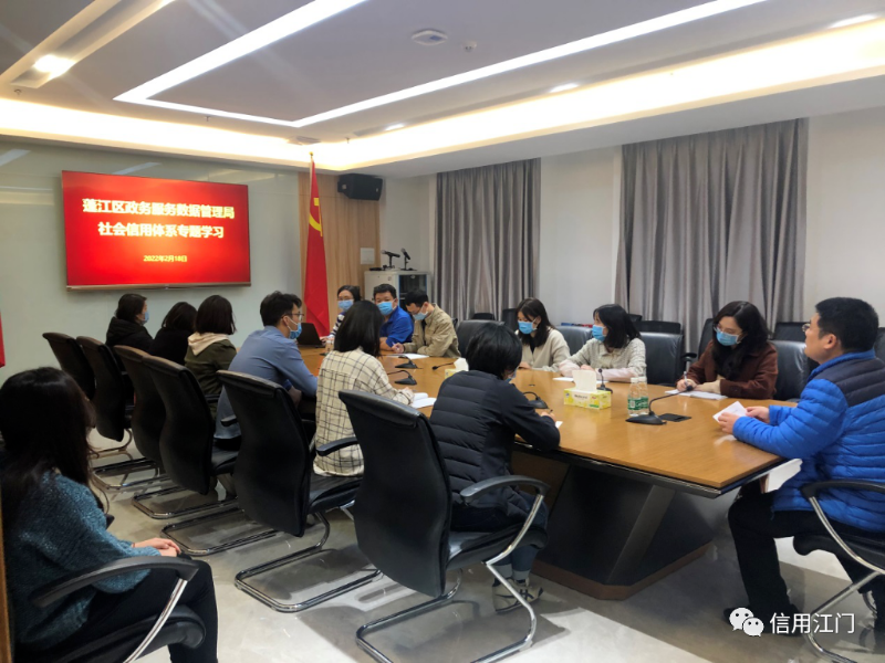 为加强社会信用体系建设, 深入推进“放管服”改革,进一步优化营商环境,保障自然人、法人和非法人组织等信用主体的合法权益,江门市蓬江区政务服务数据管理局组织机关人员集中学习《广东省社会信用条例》(以下简称《条例》)。