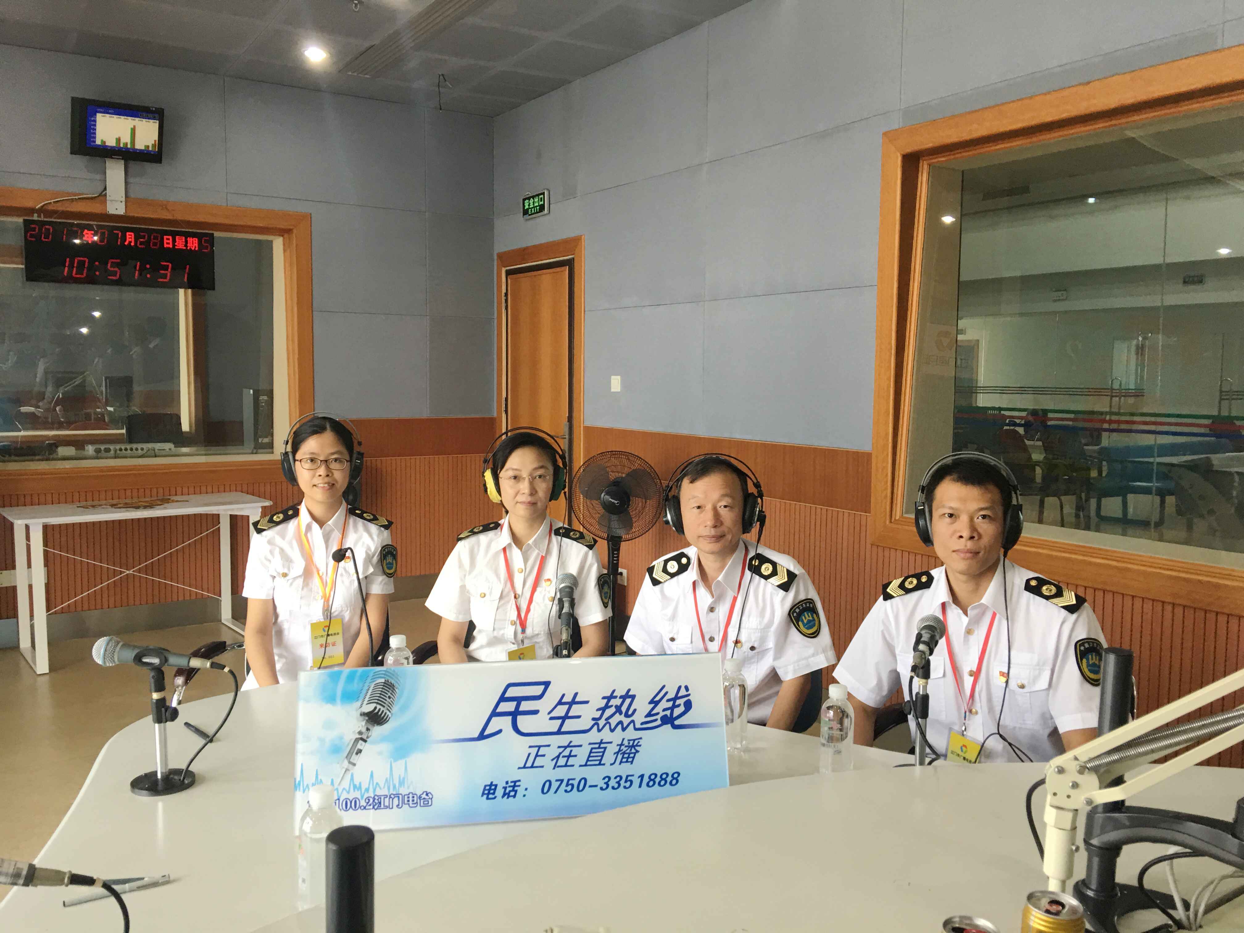 在第568期的《民生热线》节目中,江门市卫生监督所所长杨明金、公共卫生监督二科科长尹启亮、公共卫生监督一科副科长方湘妮、医疗机构监督科副科长高雪丽就游泳场所、美发店、美容院等公共场所经营单位的卫生,餐具的消毒,学校的卫生管理工作等热点话题,通过热线电话、微信、短信平台与听众进行了直接沟通。