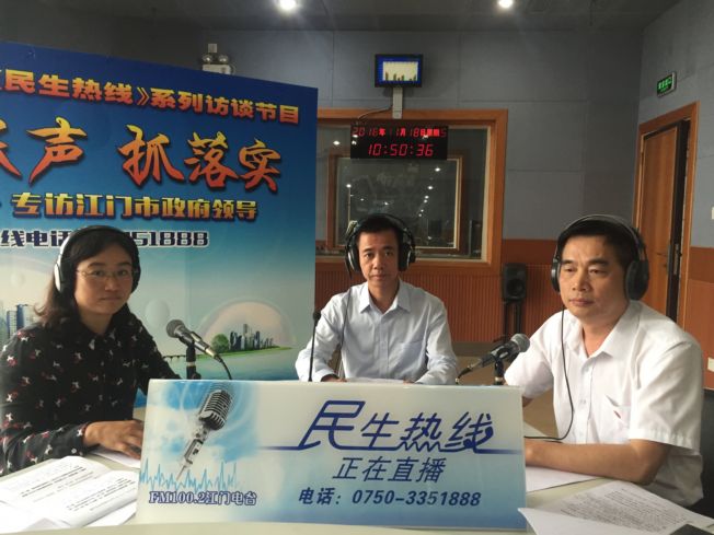在第536期的《民生热线》节目中,江门市人民政府行政服务中心主任赵瑞思、副主任李茜、副主任张健明就微市长、12345政府服务热线、邑门式政务服务改革、窗口服务质量的提升等热点话题,通过热线电话、微信、短信平台与听众进行了直接沟通。