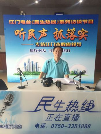 在第518期的《民生热线》节目中,江门市副市长易中强就我市人力资源和社会保障、行政服务等方面的民生问题,通过热线电话、江门邑网通、江门广播电视台官方网站和微信等与市民进行了直接沟通。