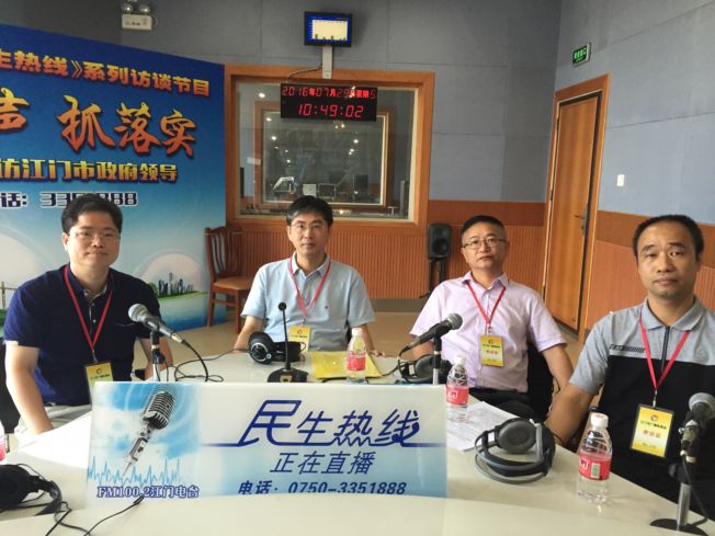 在第522期的《民生热线》节目中,江门市国土资源局局长利为民,副局长谢华宇,执法支队支队长唐汉碧,不动产登记局局长胡健忠就我市房地产等用地的供应、节约集约用地、不动产统一登记等热点话题通过热线电话、微信、短信平台与听众进行了直接沟通。