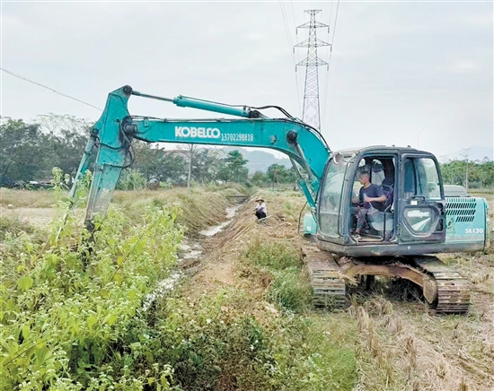 恩平市以镇村为单元,系统谋划水塘河道清淤工作。图为大田镇对灌排沟渠开展清淤行动。