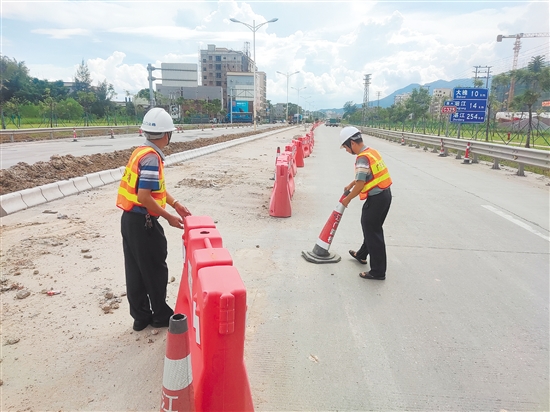 建立联防联动机制。因施工路段人口密集、交通量大,特别是铺沥青的大面积施工,需要用到大型机械和大量机械车辆、沥青材料,对交通安全产生较大影响,这是困扰工程项目施工的一大难题。工程项目临时党支部通过反复研究、多方考察和现场勘测,制定完善分段施工方案和安全应急预案,同时,加强与沿线属地镇政府和交警部门的沟通,建立联防联动机制。此外,施工前对所有人员进行安全技术培训,选择在车流量较小的时间段错峰施工,严格围蔽施工路段,路口和重点路段设安全员戴安全帽、手持警示导牌、穿反光马甲疏导交通,工程项目临时党支部班子做好指挥调度,支部党员干部各负其责,确保施工有序安全进行。