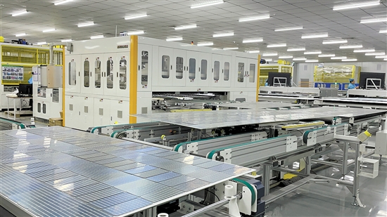 鹤山发力布局硅能源产业。图为位于鹤山的晶镁光能生产车间单晶硅组件生产线。