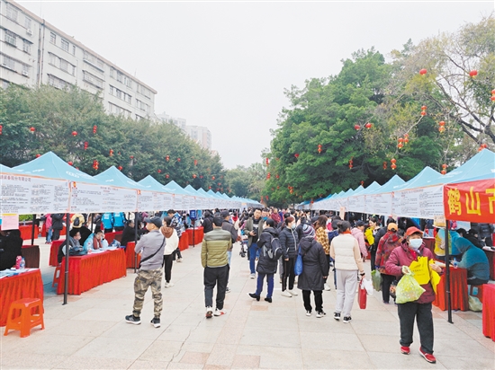 江门日报讯 (文/图 记者/张舜同 通讯员/冯英杰 李文龙) 为帮助企业和求职者搭建信息交流平台,促进高质量充分就业,2月28日,鹤山市人社局联合鹤山市退役军人事务局、市总工会、市残联,在沙坪街道北湖广场举办2024年“南粤春暖”鹤山市专场招聘会。