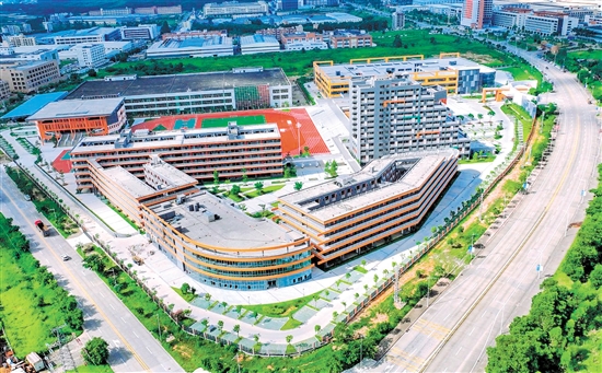 江门鹤山投入6亿元,新建、改扩建6所城区学校、4所乡镇学校,新增公办学位9900个,县级政府教育履责评价位居全省前三。图为鹤山职校新校区。